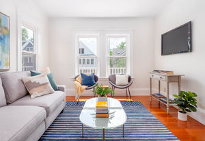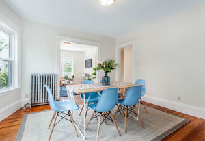Rare condo w/ private front entrance near Harvard University, Huron Village, and Fresh Pond comes with 3 non-tandem parking spaces. This 2 bedroom + office unit on the top floor of a 2 unit building boasts modern features like central AC and in-unit laundry along with charming architectural details. As you enter the living room, you immediately notice the inviting warmth from the 3 windows that face southeast and southwest, optimally oriented to capture maximum natural sunlight from sunrise to sunset. The large office room with closet is sizable enough to flex as a nursery or small guest room to cater to your needs in various seasons of life. Right off this room is an expansive, private balcony that stretches the width of the building. The dining room has a nice bay window and leads directly into the custom-designed kitchen that features a farmhouse sink and exceptional storage space. Directly behind the kitchen is a private laundry area and access to a private rear balcony.